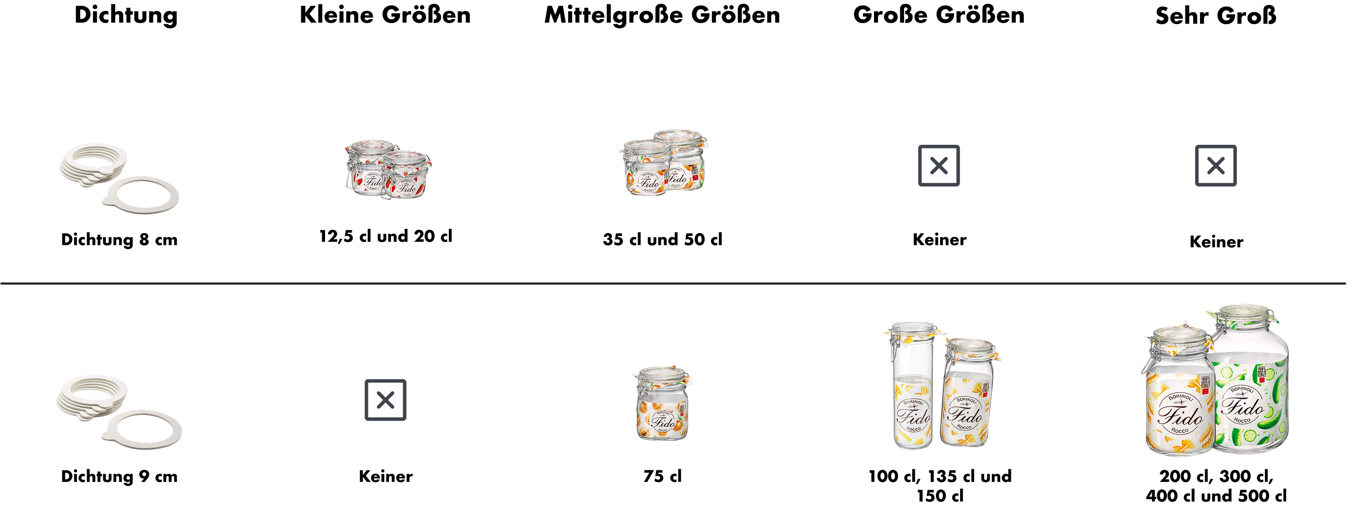 In questa sezione troverai i barattoli della linea fido di bormioli associati alle loro guarnizioni