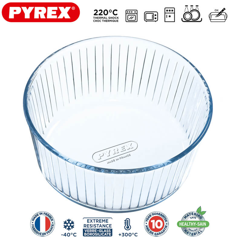 21 cm - Pyrex Bake & Enjoy Plat À Soufflé Rond En Verre Borosilicate