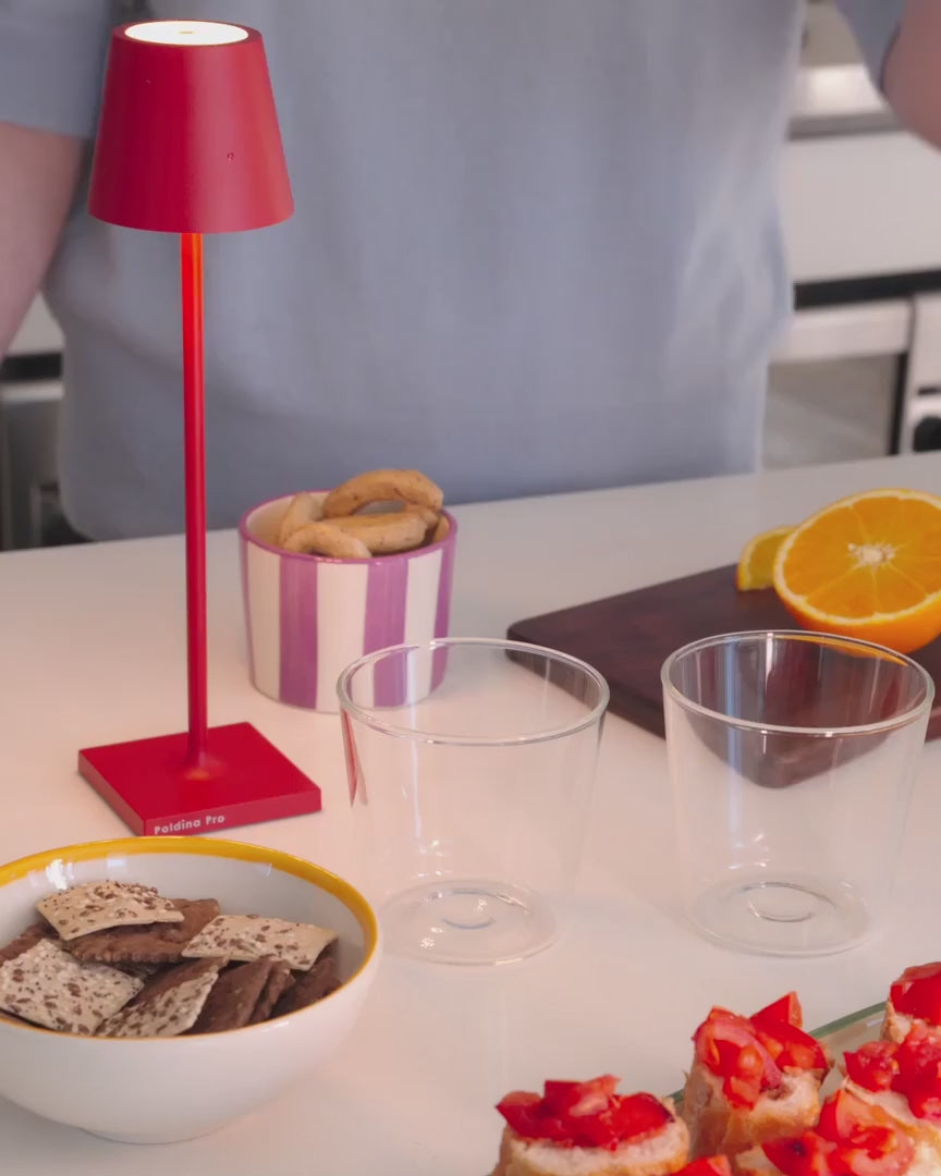 Le Spritzometro de Zafferano, signé par les designers Giulia Cappelletto et Anastasia Moruz, est le set idéal pour préparer et servir le spritz avec style et précision. Réalisé en verre borosilicate soufflé et travaillé à la main, il se compose de deux élégants tumblers et d'une baguette tricolore exclusive. Cette dernière, insérée dans la rainure au fond du verre, sert de doseur pratique pour mesurer avec précision les ingrédients et de mélangeur pour amalgamer le cocktail, garantissant un résultat toujours parfait. Conçu pour deux personnes, le Spritzometro célèbre l'art de l'apéritif vénitien, transformant chaque toast en une expérience conviviale unique. C'est un set au design innovant, pensé pour ceux qui aiment allier tradition et créativité, parfait aussi comme idée cadeau raffinée.